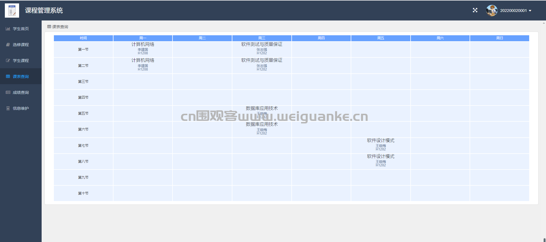 课表查询:查看授课时间及地点安排。