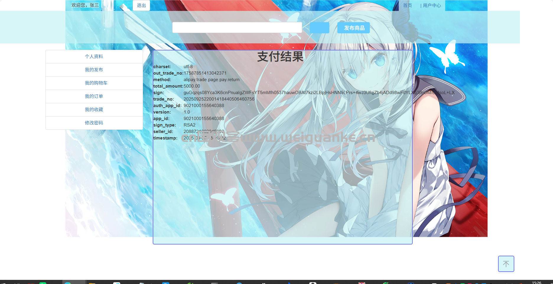 我的订单:查看支付信息