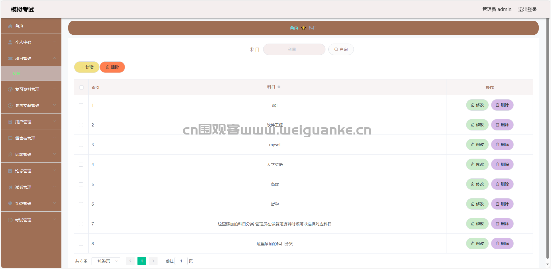 9.试题管理:查看、添加、编辑、删除试题信息