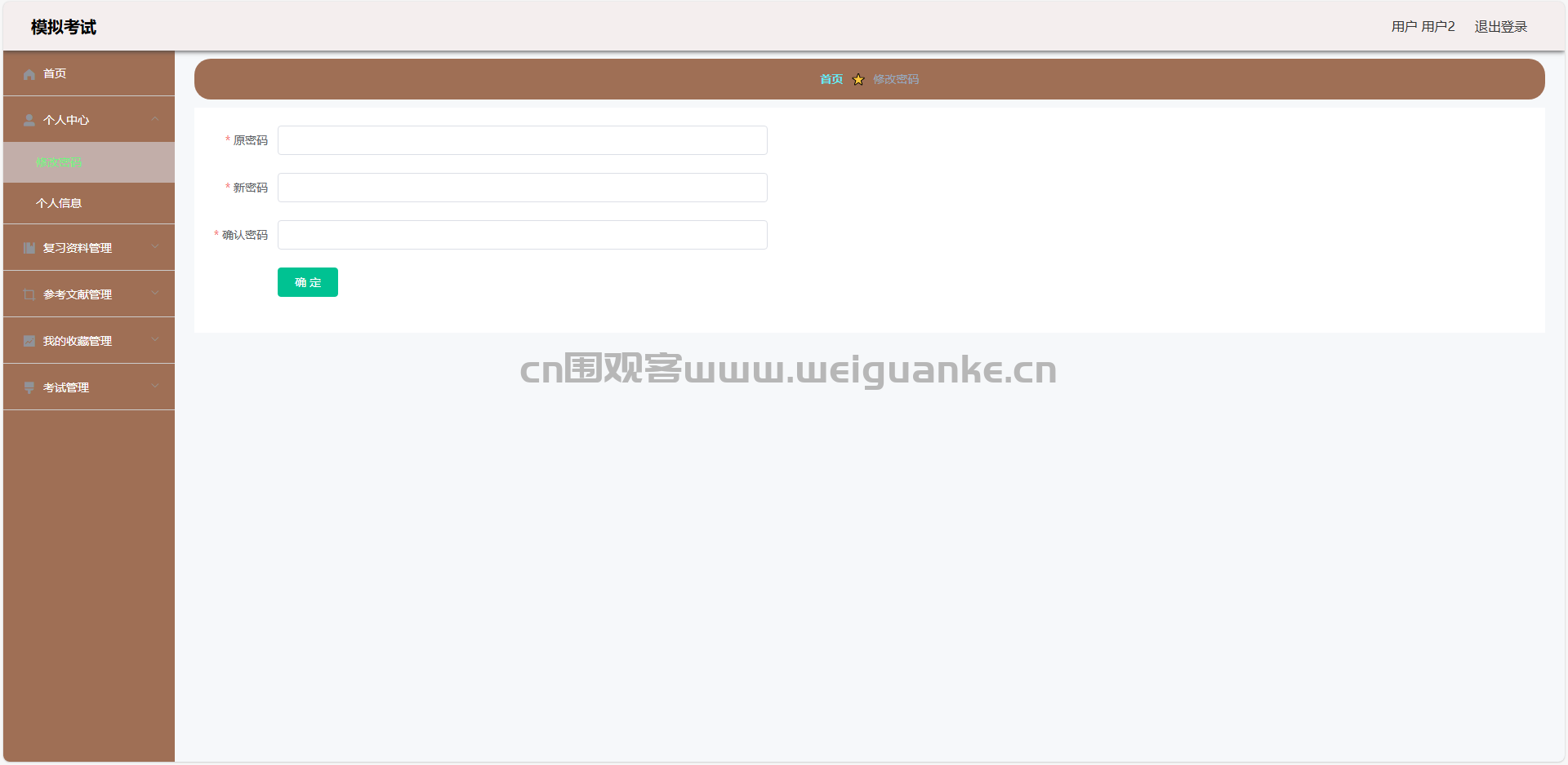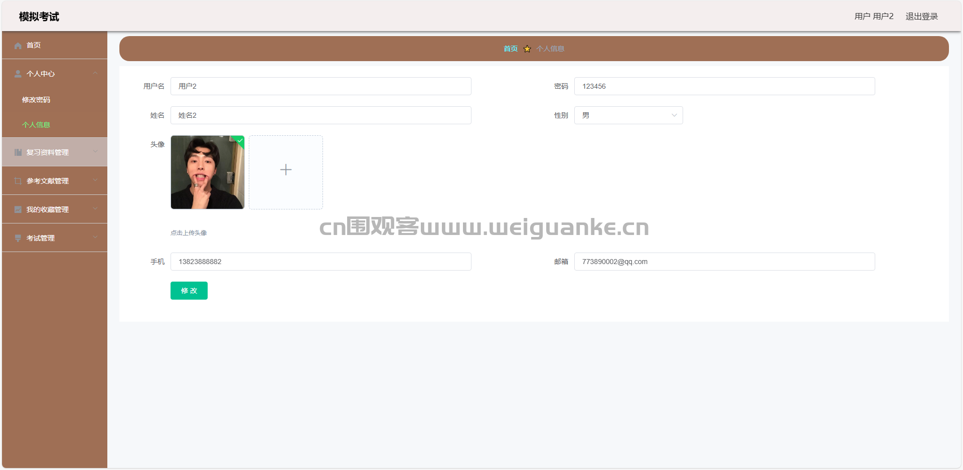 1.个人中心:查看和编辑个人信息,修改登录密码。管理收藏,论坛,留言板信息。查看错题本,试卷,考试记录信息。