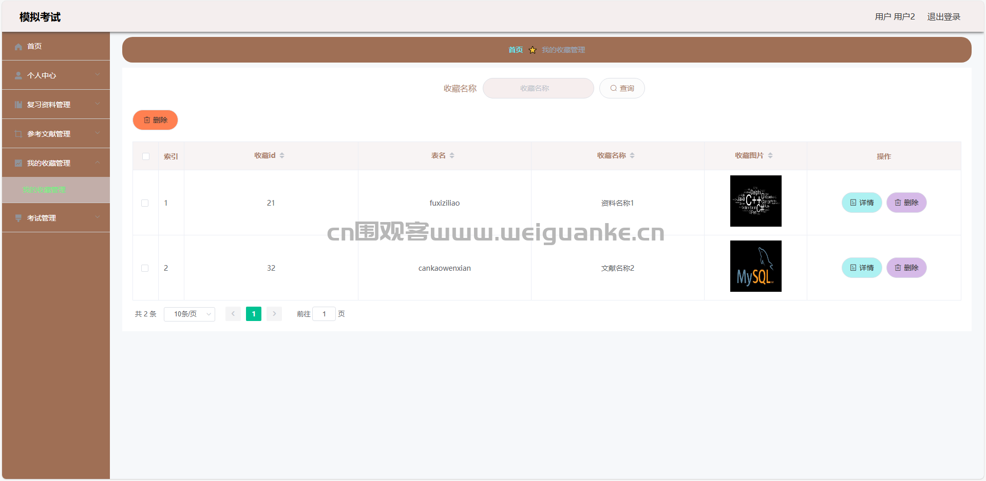 2.收藏管理:查看、删除收藏信息