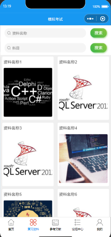 2.复习资料:查看复习资料信息进行评论,收藏操作。