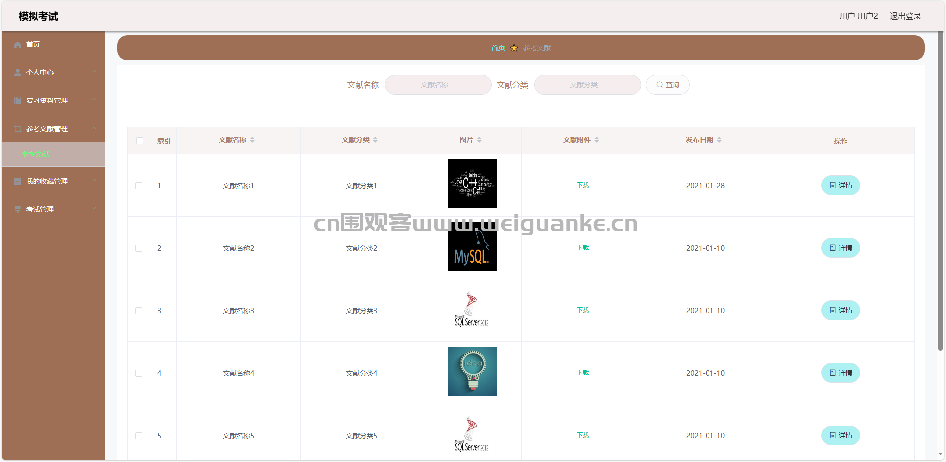3.复习资料管理:查看资料信息