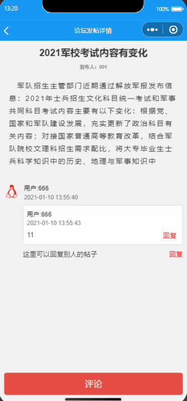 4.论坛:查看论坛信息进行回复。