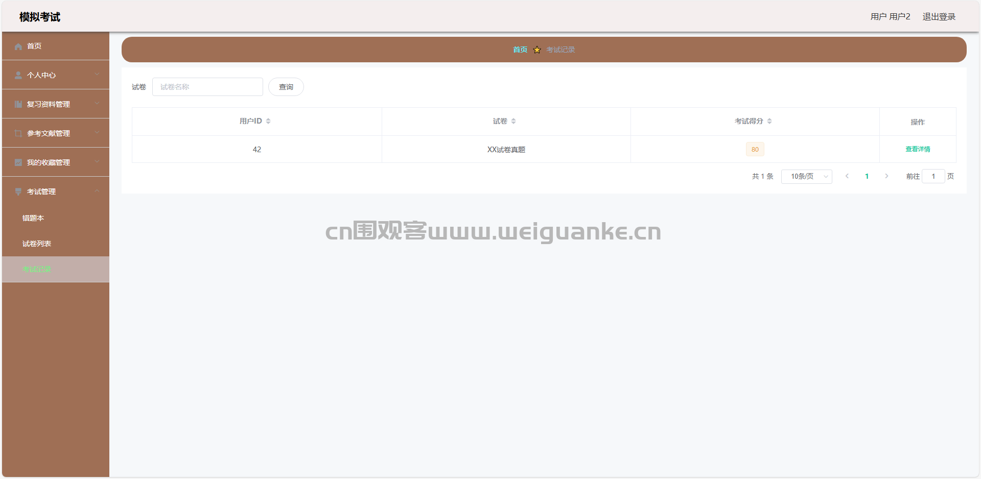 13.考试记录:查看考试记录信息