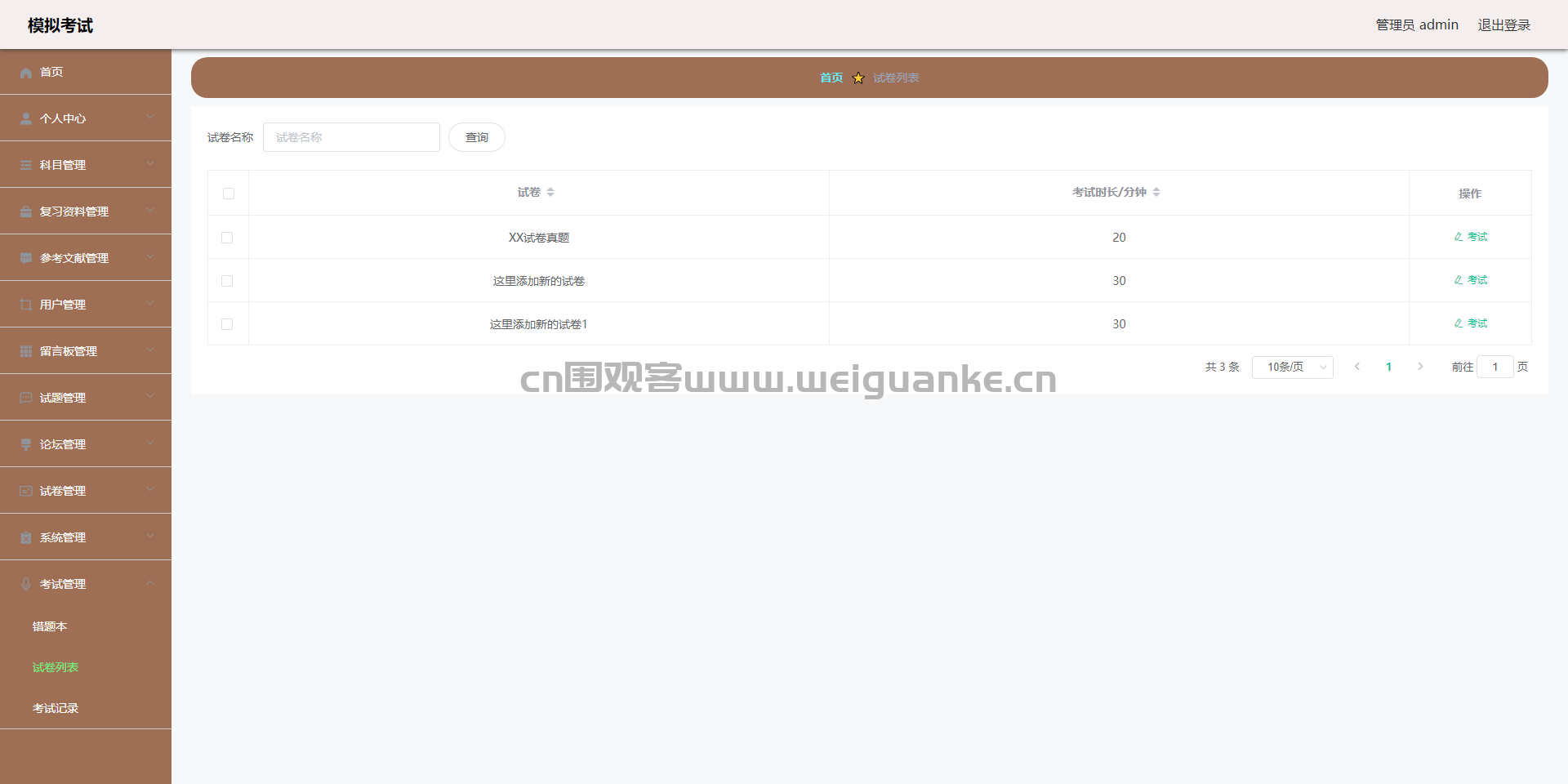 10.试卷管理:查看、添加、编辑、删除试题信息