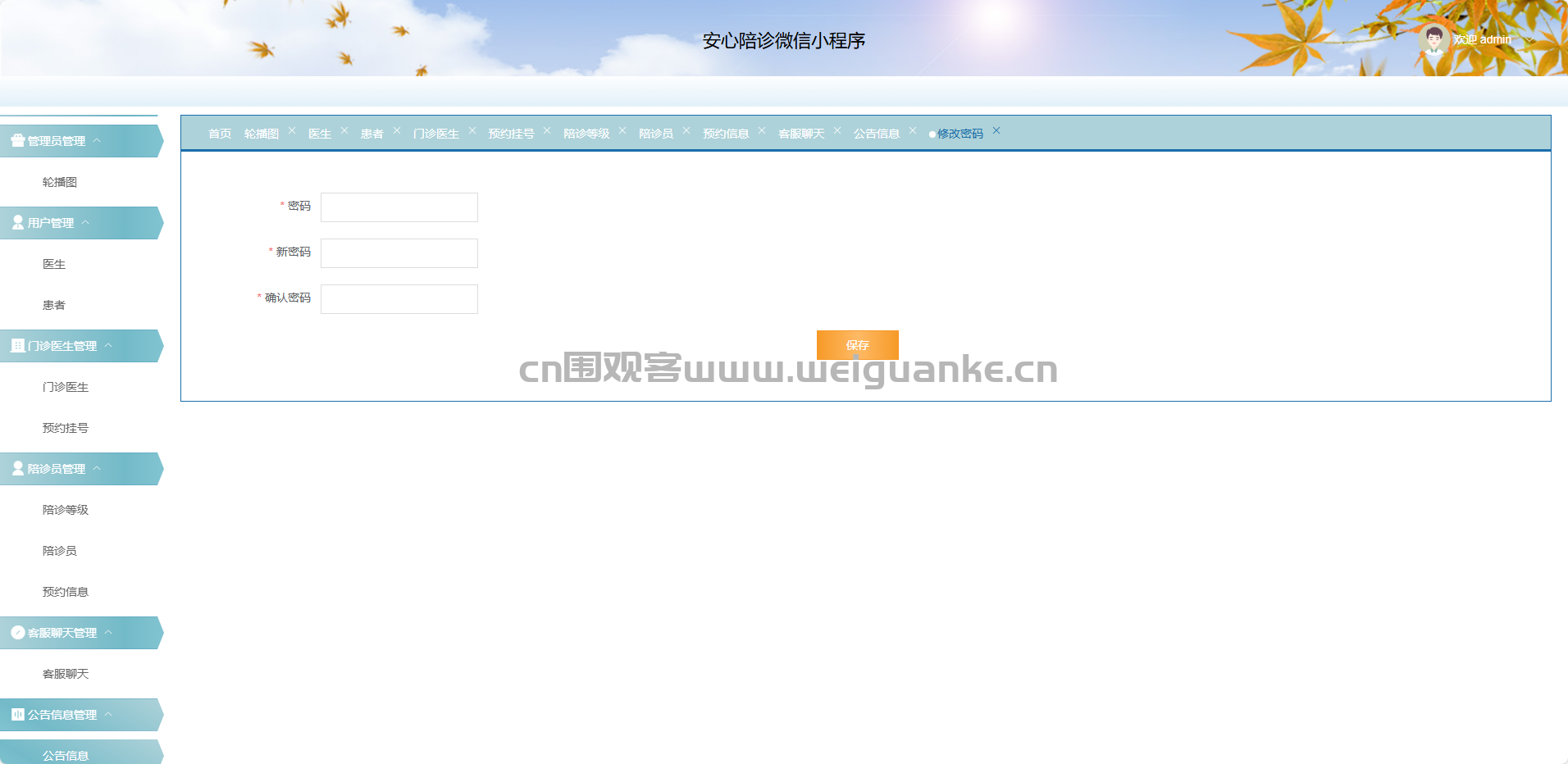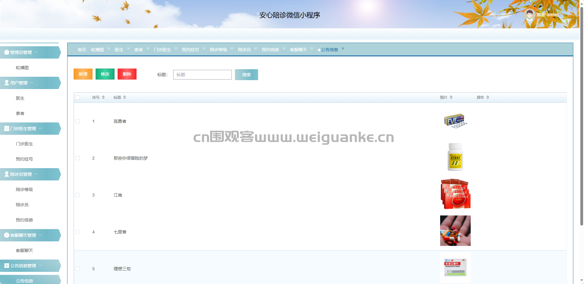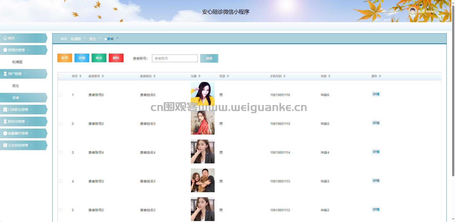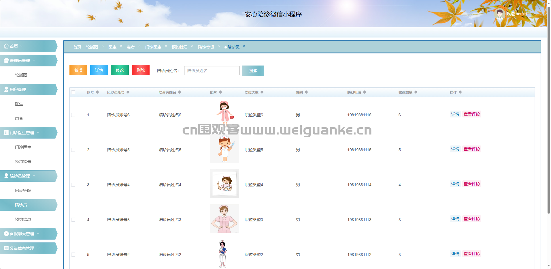陪诊员:新增、修改、删除、查询陪诊员档案。
