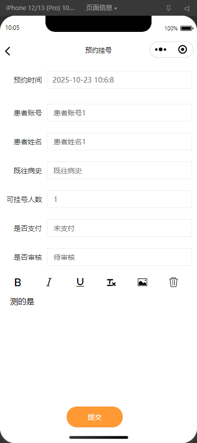 患者账户密码: 患者账号1/123456