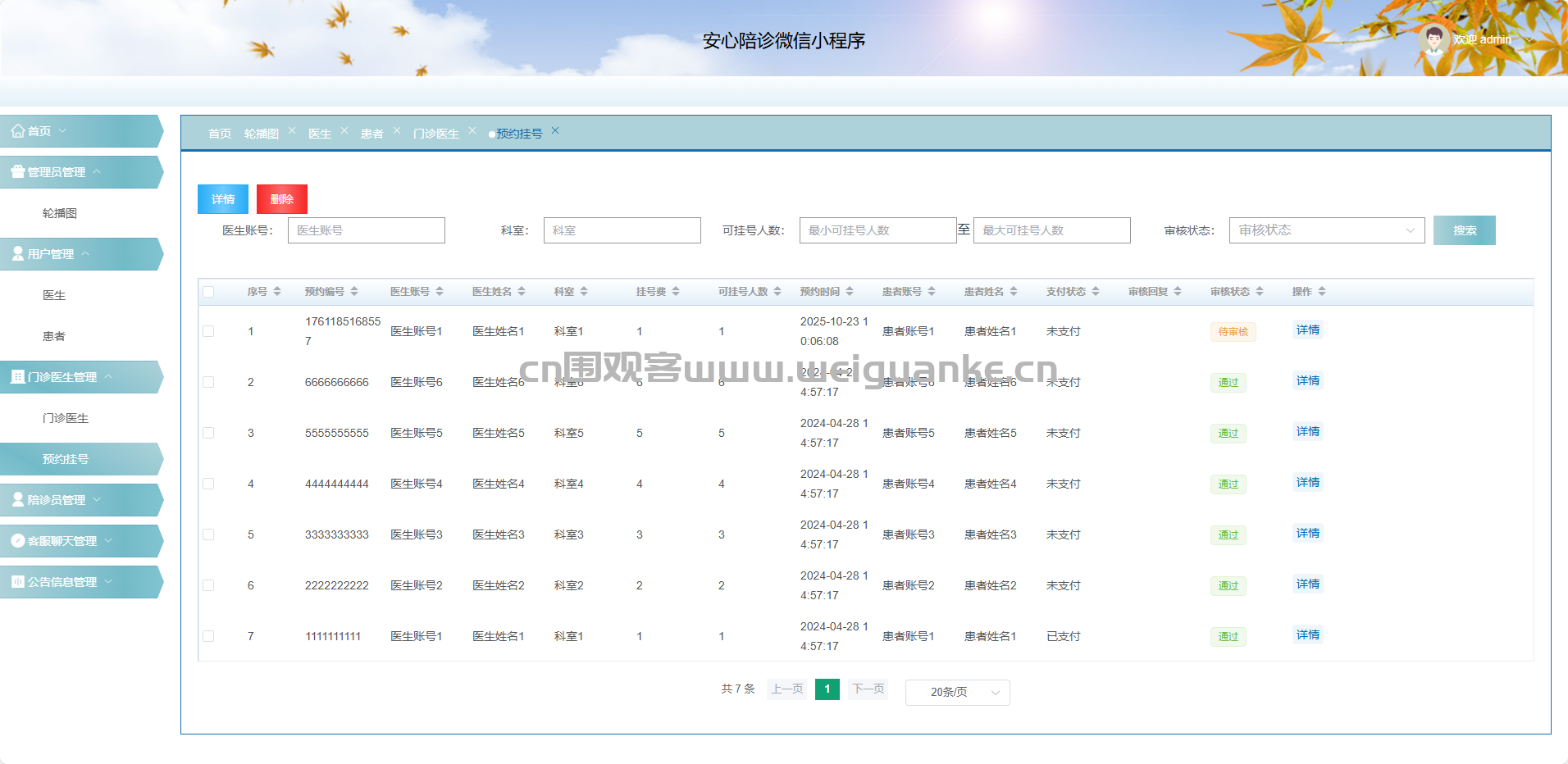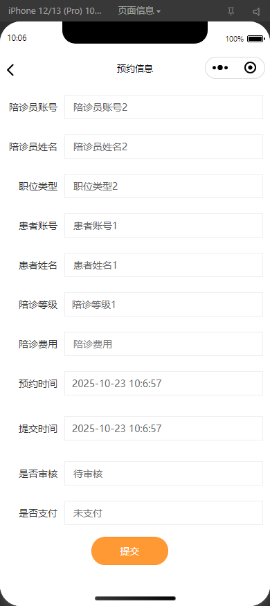 预约信息:查询、调整、取消、删除陪诊订单。