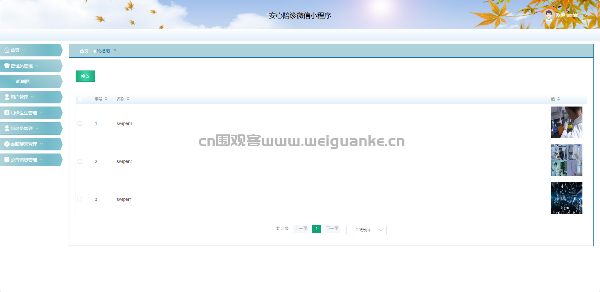 轮播图:维护首页轮播图及跳转链接。