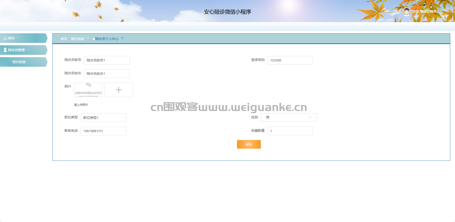 陪诊员账户密码: 陪诊员账号1/123456
