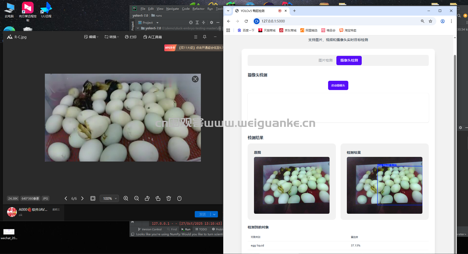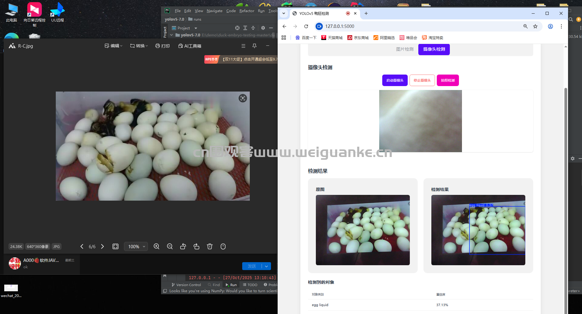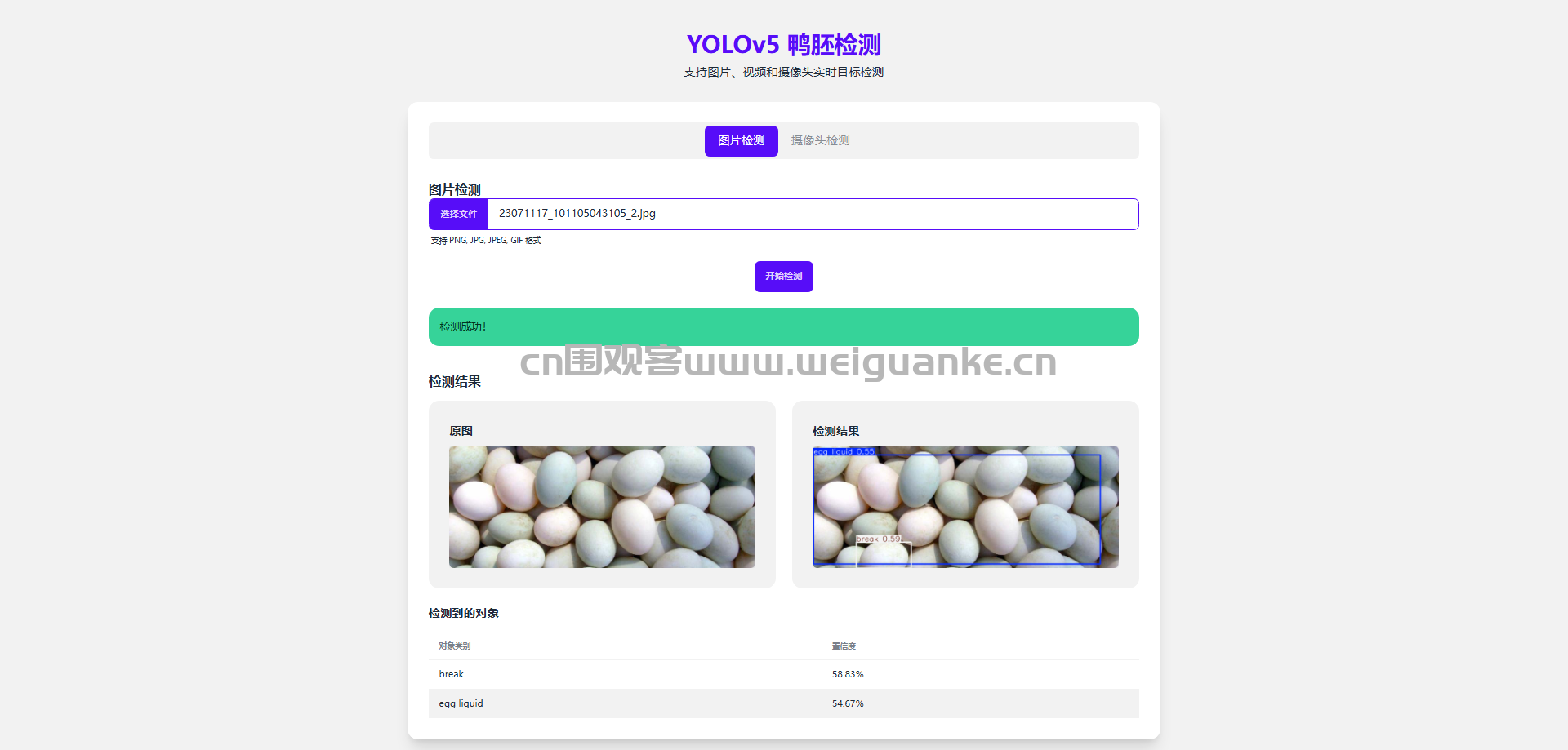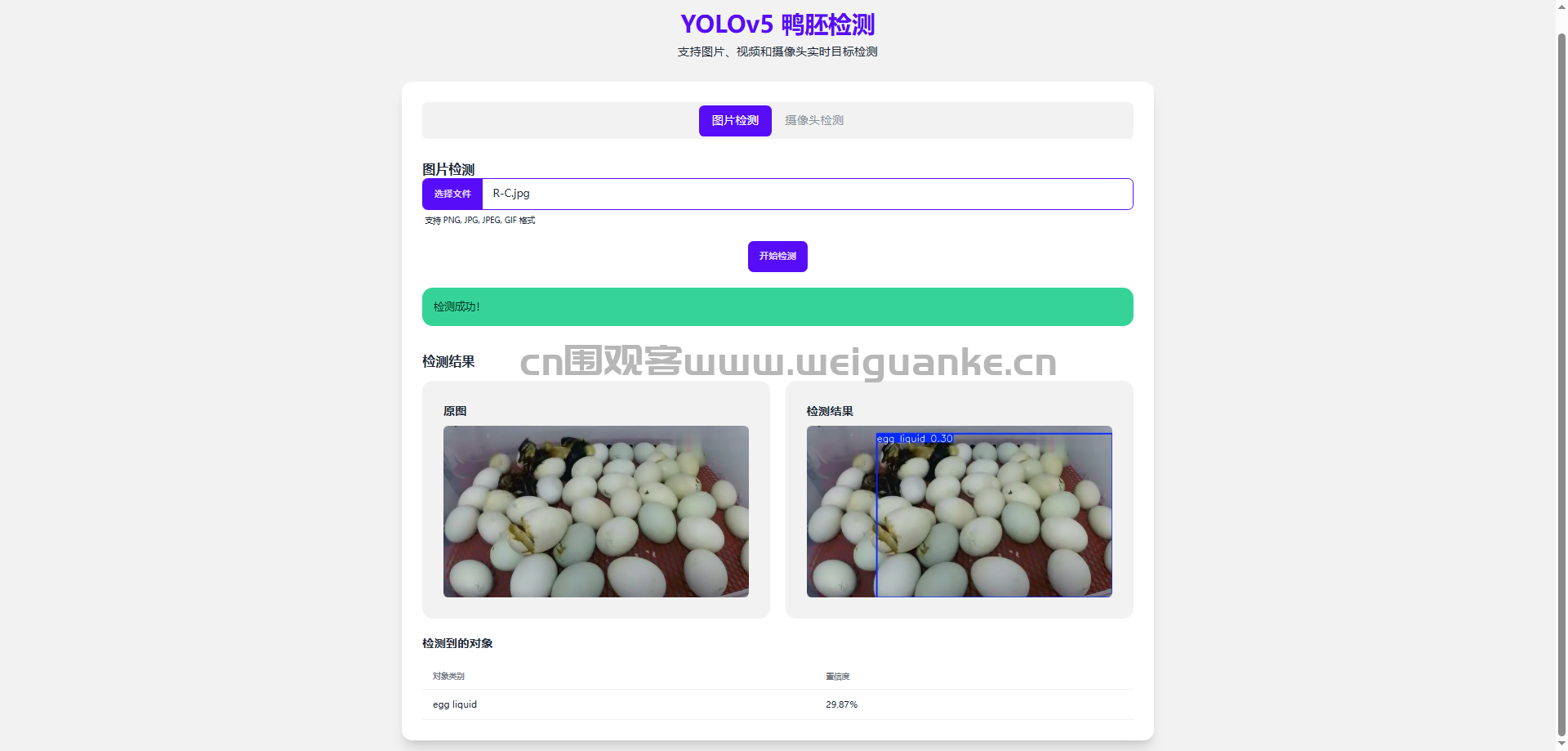 摄像头检测 :摄像头实时监测鸭胚类型