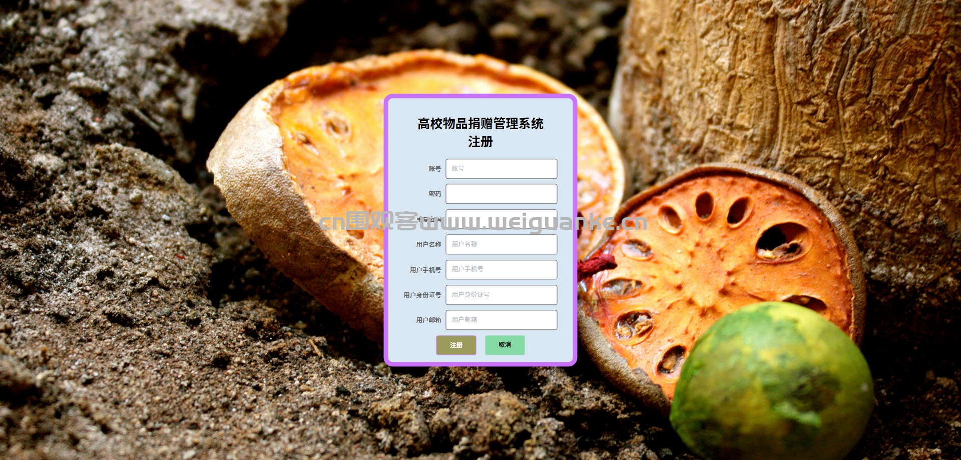 前端:http://localhost:8080/gaoxiaowupinjuanzeng/front/pages/login/login.html