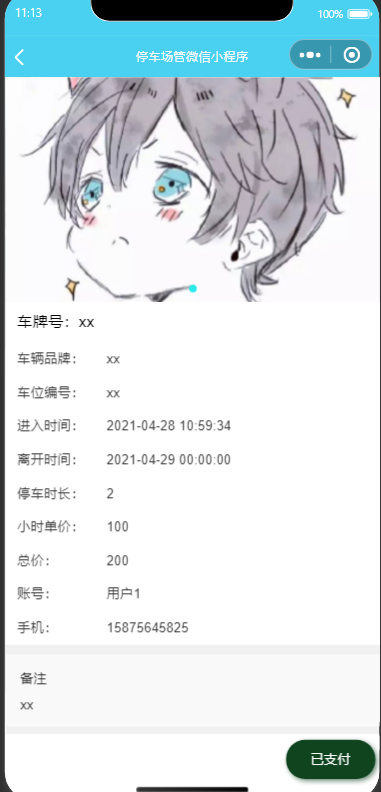 3.车位信息管理:查看、添加、编辑、删除车位信息(车位状态需手动修改)