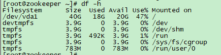 使用命令df -h可以查看磁盘使用情况: