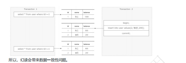 时候。事务T2插入一条属于事务T1范围内的数据,并且提交了。那么这个时候事务T1查询