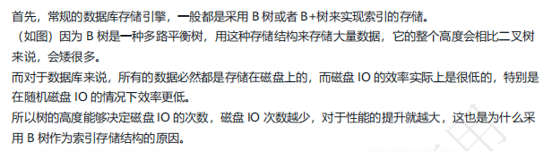 首先常规的数据库存储引擎,一般都是采用B树或者B+树来实现索引的存储;因为B树是一种