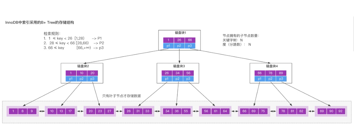 引和数据的一个存储结构。相比较于B树的结构,B+树做了几个方面的一个优化: