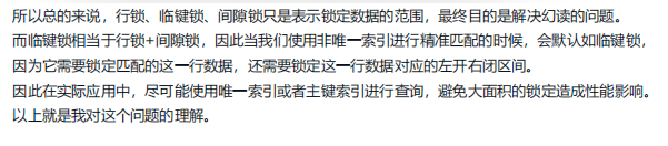 的就是使用**唯一索引**或者**主键索引**进行数据查询。避免大面积锁定造成性能的影响。