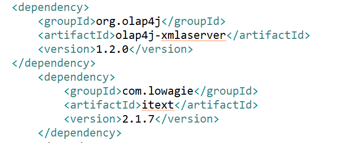文章讲述了在开发过程中遇到的Maven仓库中缺少olap4j-xmlaserver和itext两个jar包的问题。为了解决这个问题,开发者在pom文件中添加了相应的依赖项,指定了这两个库的groupId,artifactId和version,随后Maven自动下载了这些库到本地仓库,从而修复了错误。