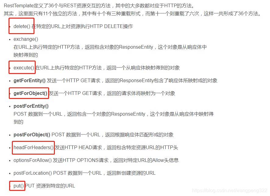 先来看看 RestTemplate常用的几个方法:
