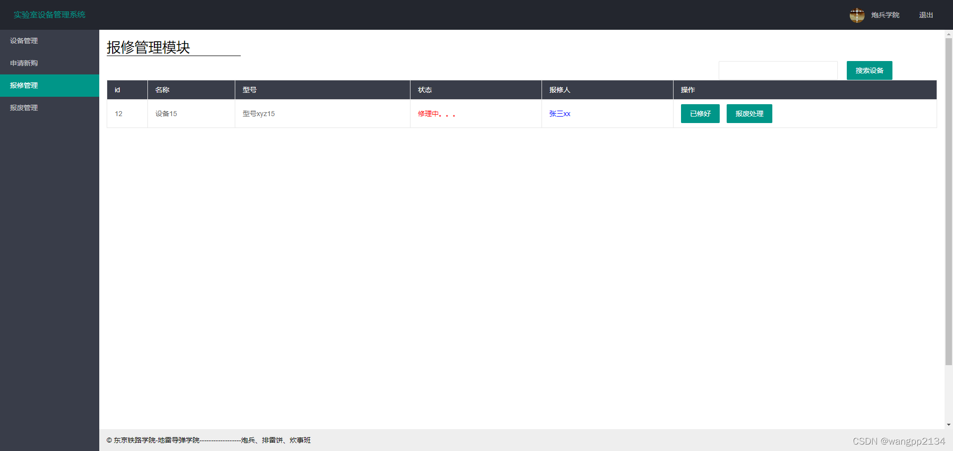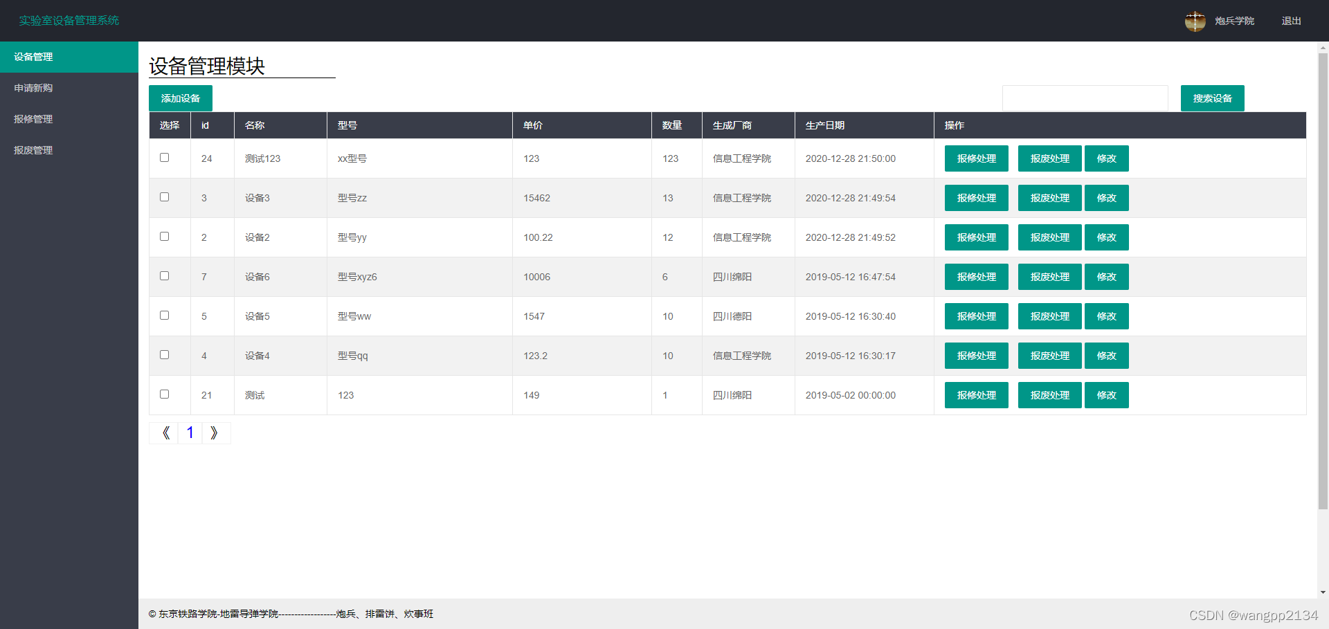 总结:该项目是一个完整的项目,包含了设备管理,设备采购,设备保修以及设备报废模块,还有数据导出表格功能,作者做的很用心。不过,还是有一点遗憾,没有能把用户管理模块增加上去就更完美了,感谢作者的分享,收获很大。