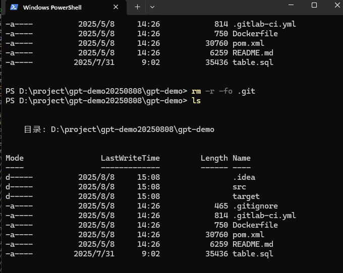 通过以上步骤,你就成功地从项目中去除了旧的Git信息,并重新建立了新的Git仓库。