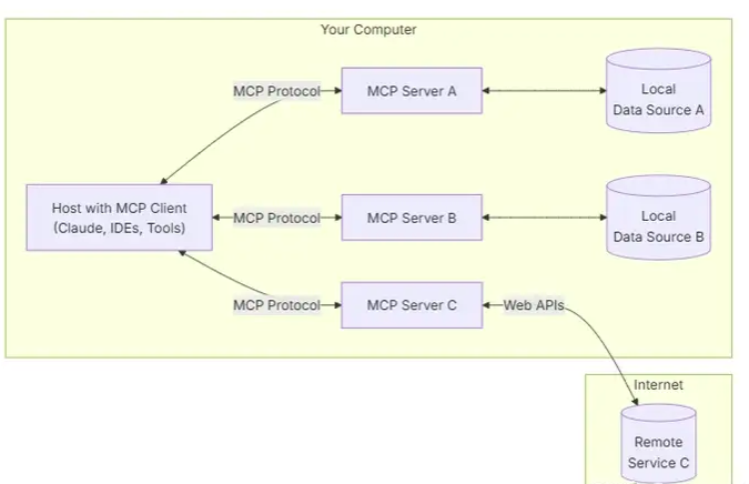MCP允许AI模型通过标准化的方式连接到外部数据源或服务(比如天气API、数据库查询等)。