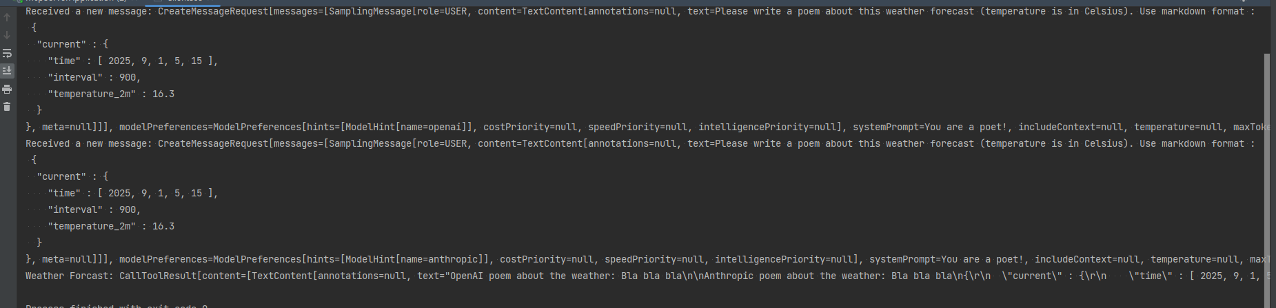 然后运行测试文件 ClientSse.java ,可以看到终端返回了天气信息。