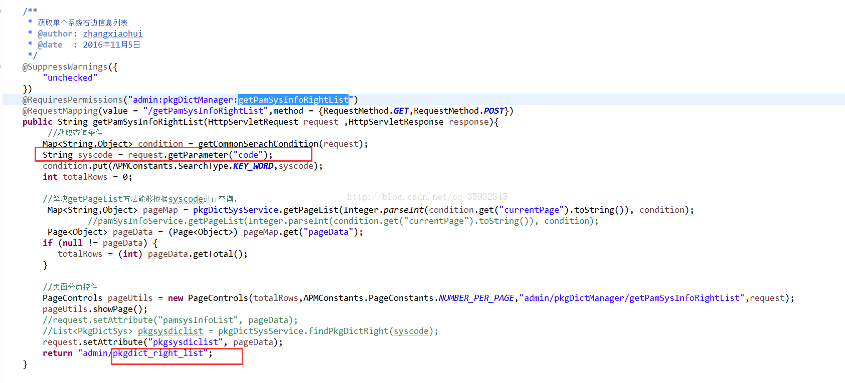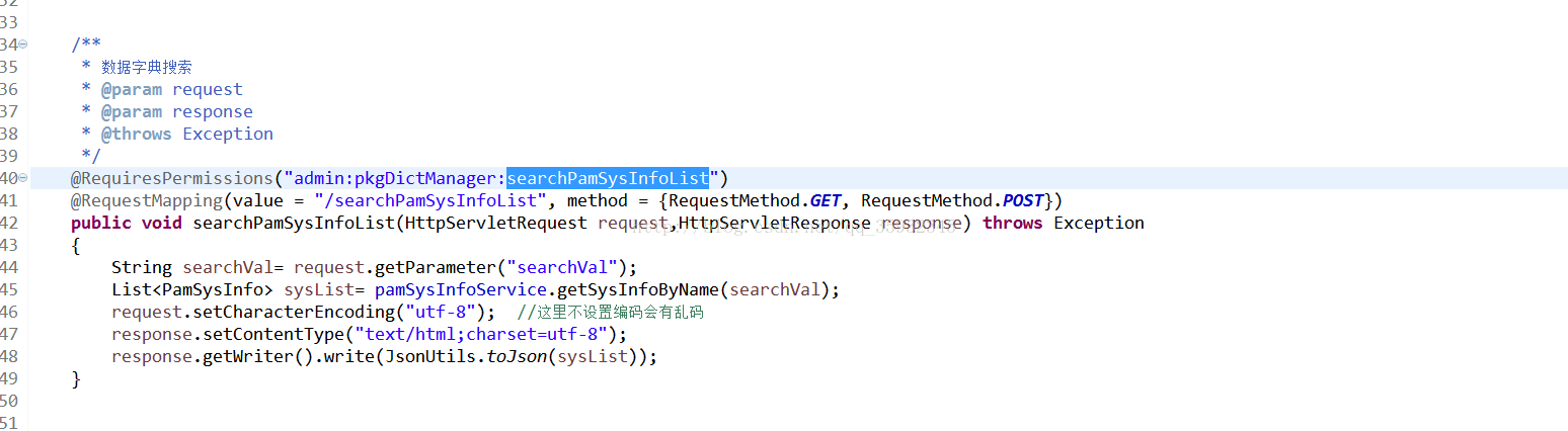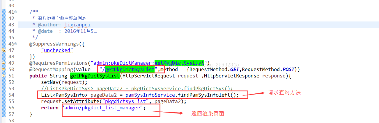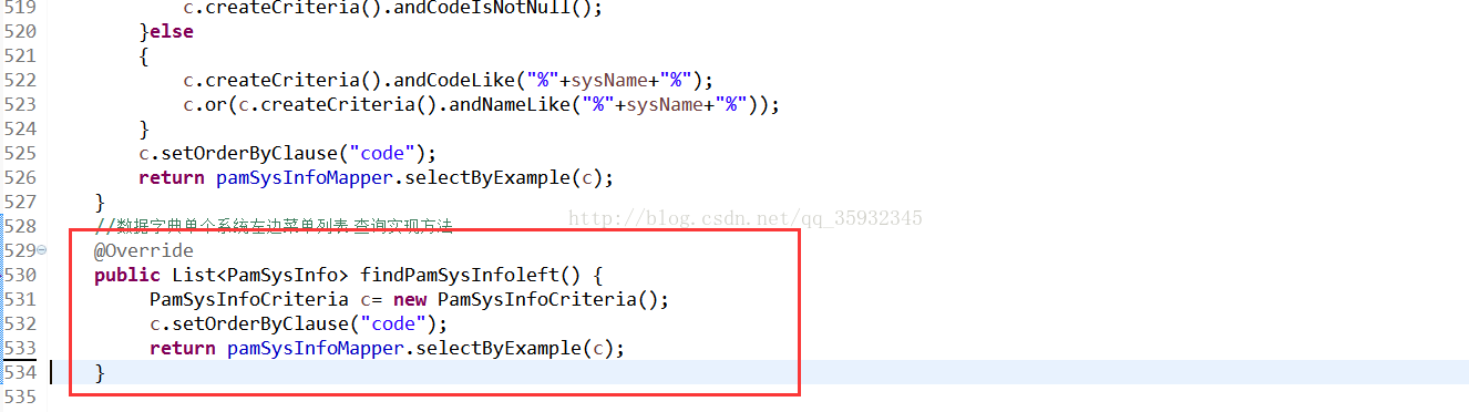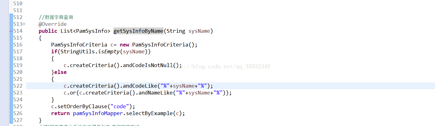 I、进入数据字典先将pam_sys_info表里的数据以“系统代码+系统名称”查询出来并且显示的Controller请求方法如下: