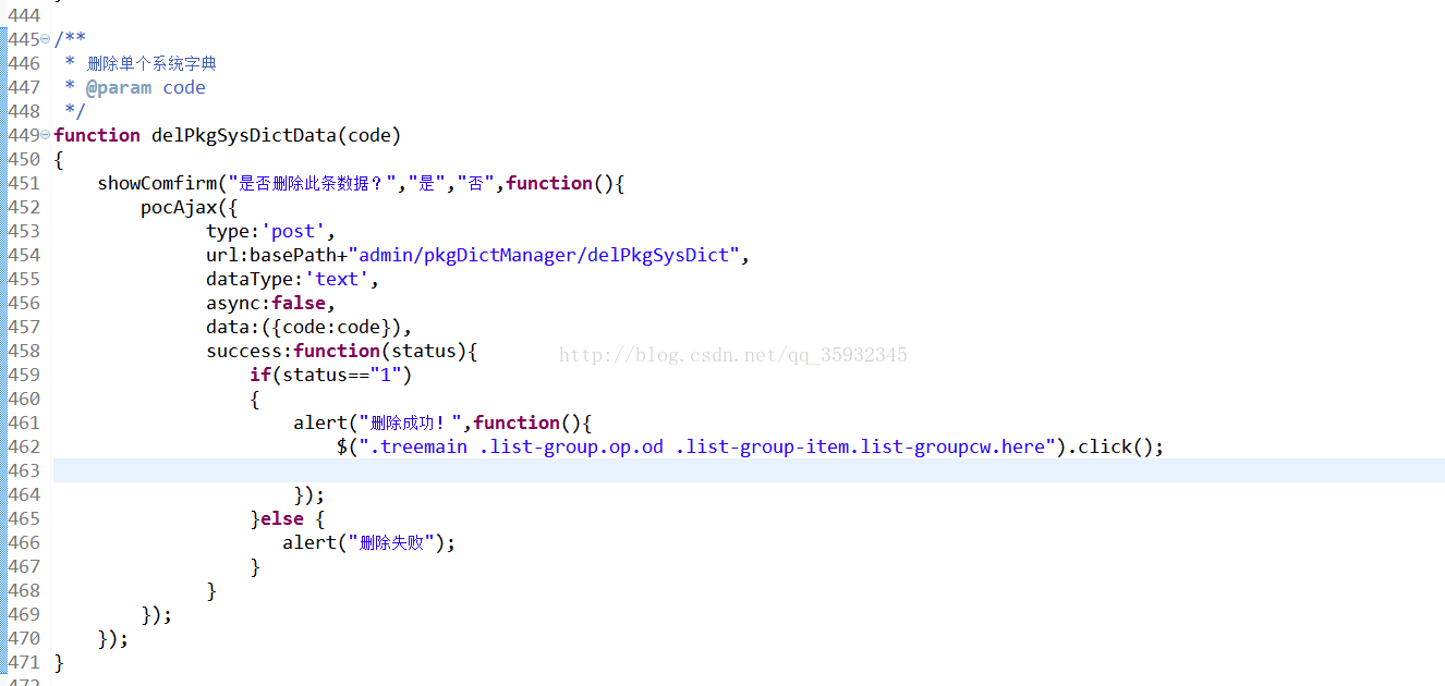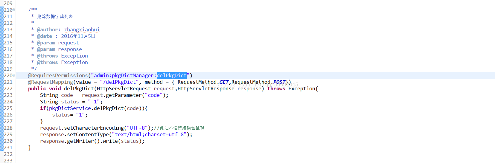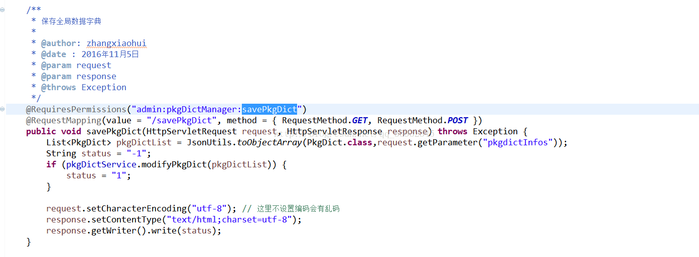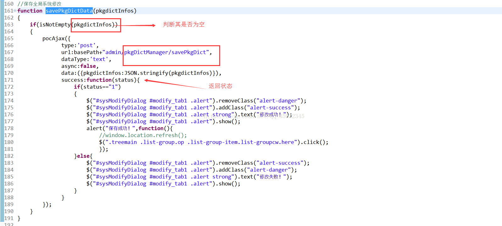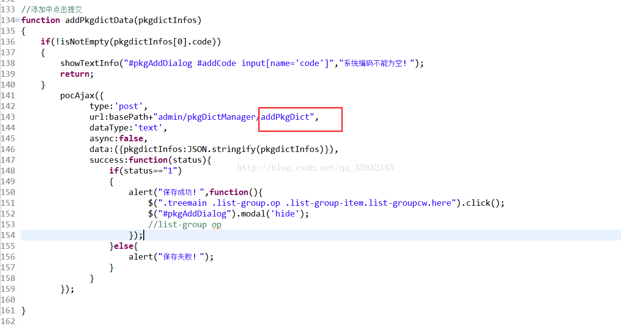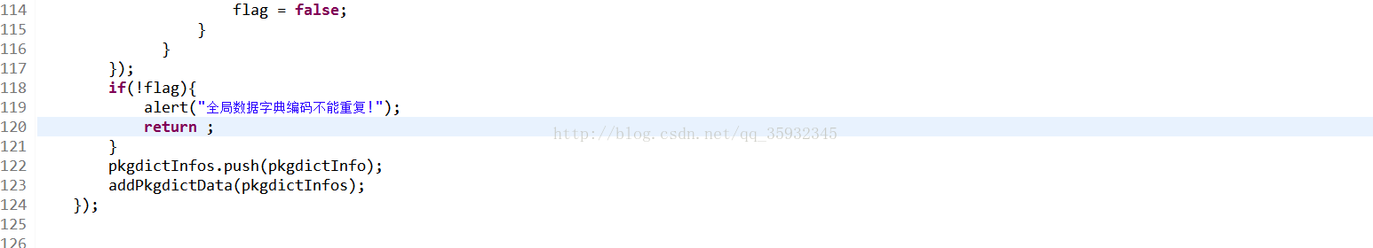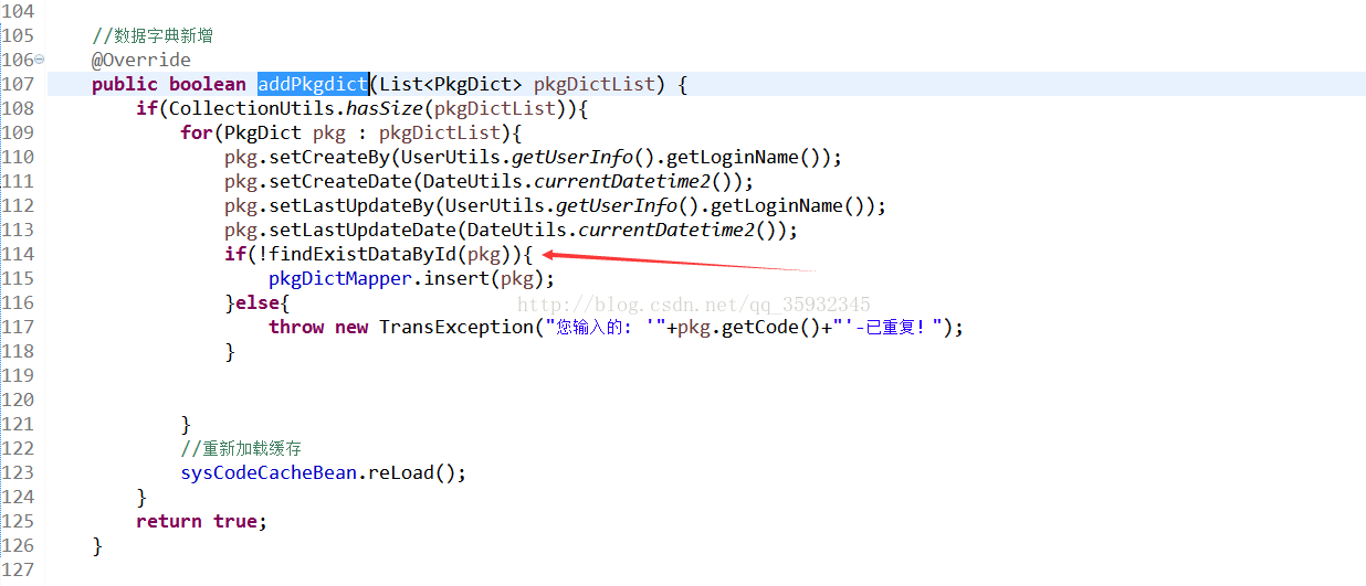 IV、此处的pkgDictIsRepeat请求方法,的目的是先根据code去查数据表是否存在相同的数据,如果有将不会去执行addPkgdictData方法进行保存。否则相反,也就是相当一个去重的步骤。