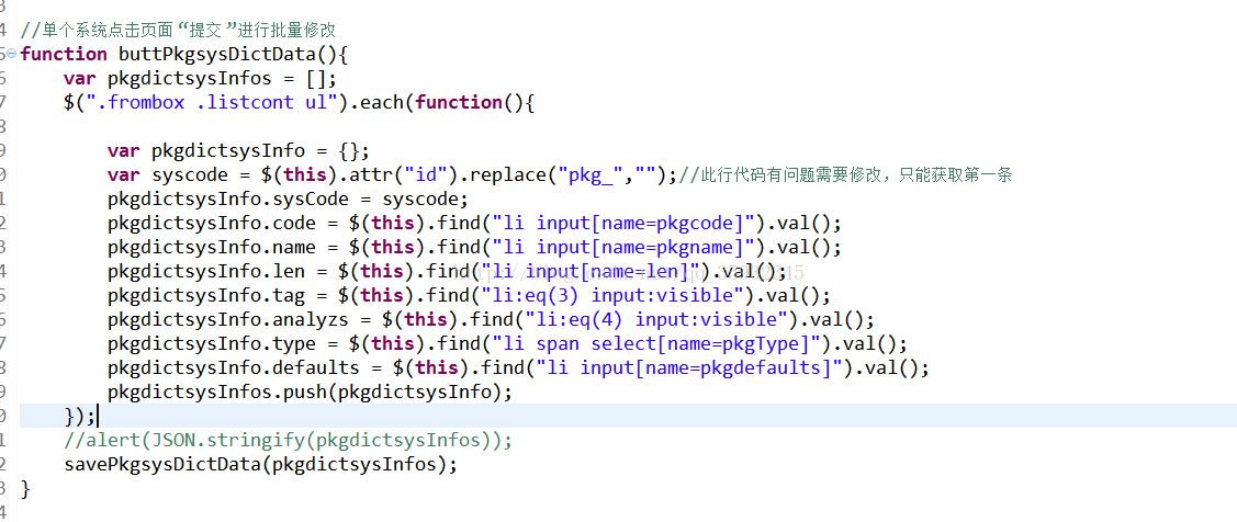 I、获取单个系统列表的修改的数据,并且each循环,因为是批量提交。