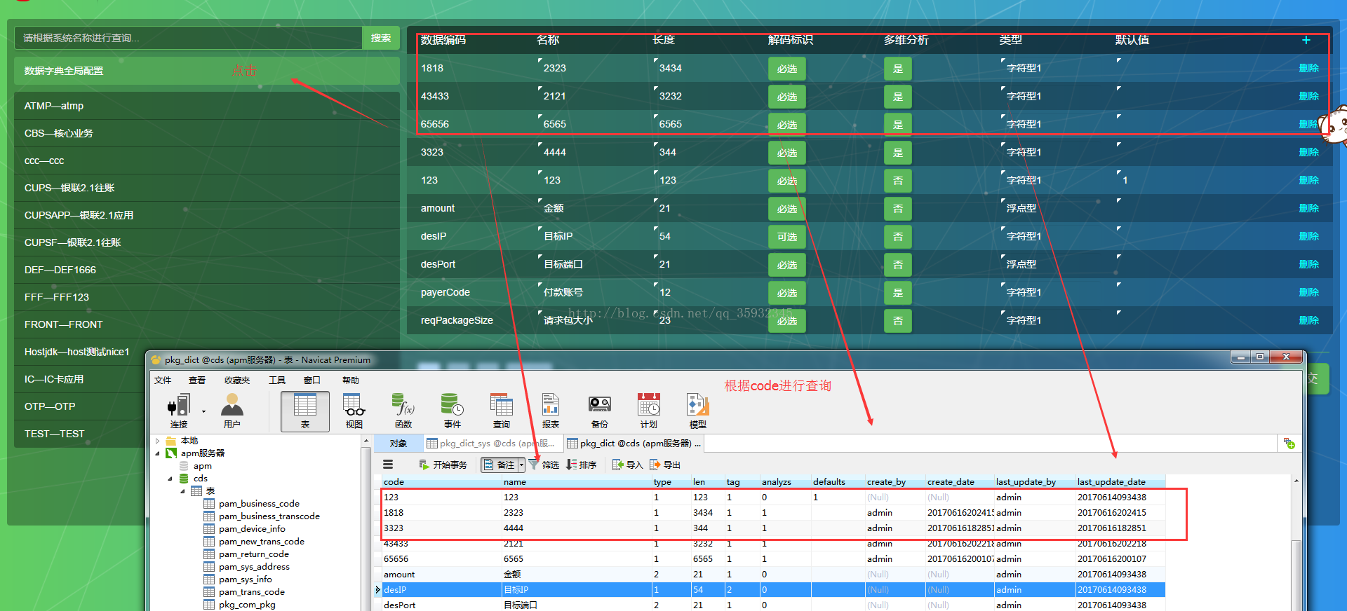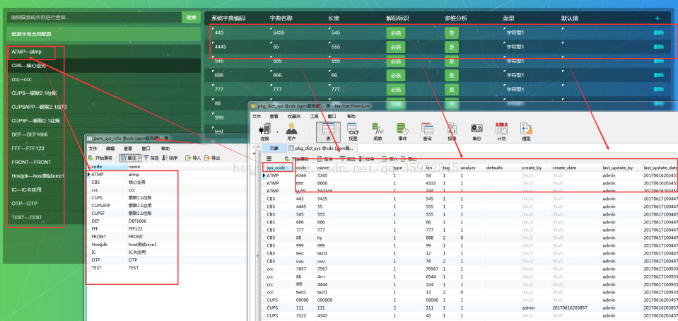 2、pkg_dict_sys 表数据与pam_sys_info表以及页面之间的关系如图(1),pkg_dict表数据与页面之间的关系 如图(2)。
