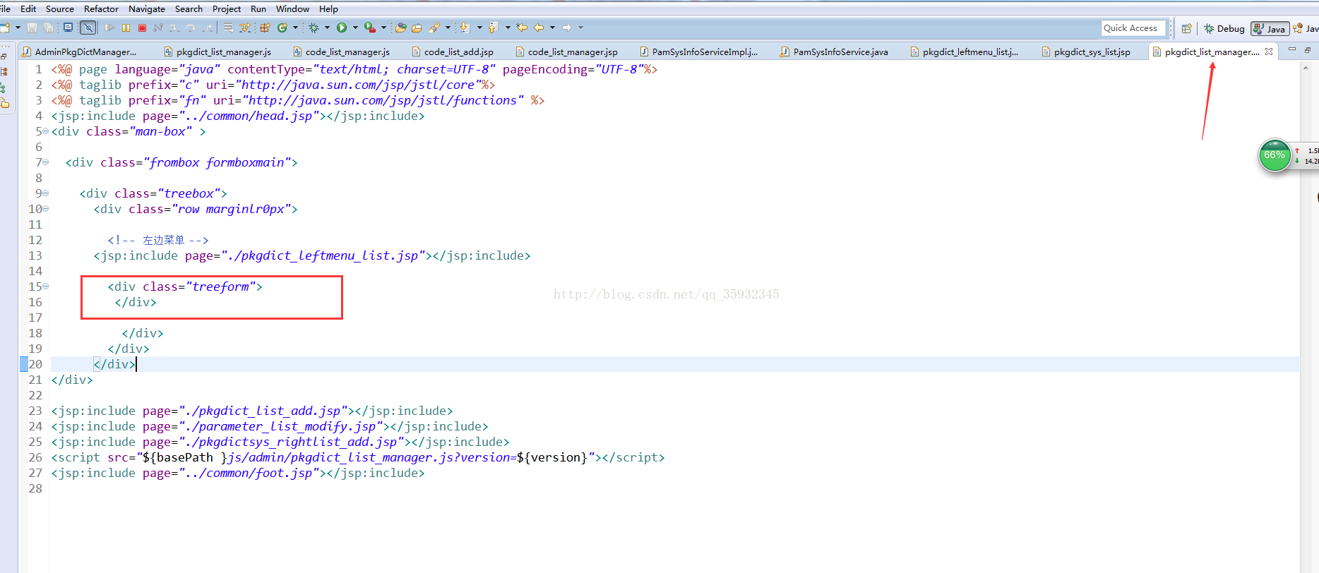 II、此处的标签$(“.treeform”),这个属性来自于下图:查询左边返回的页面。将查询出的页面放到这个标签下面。