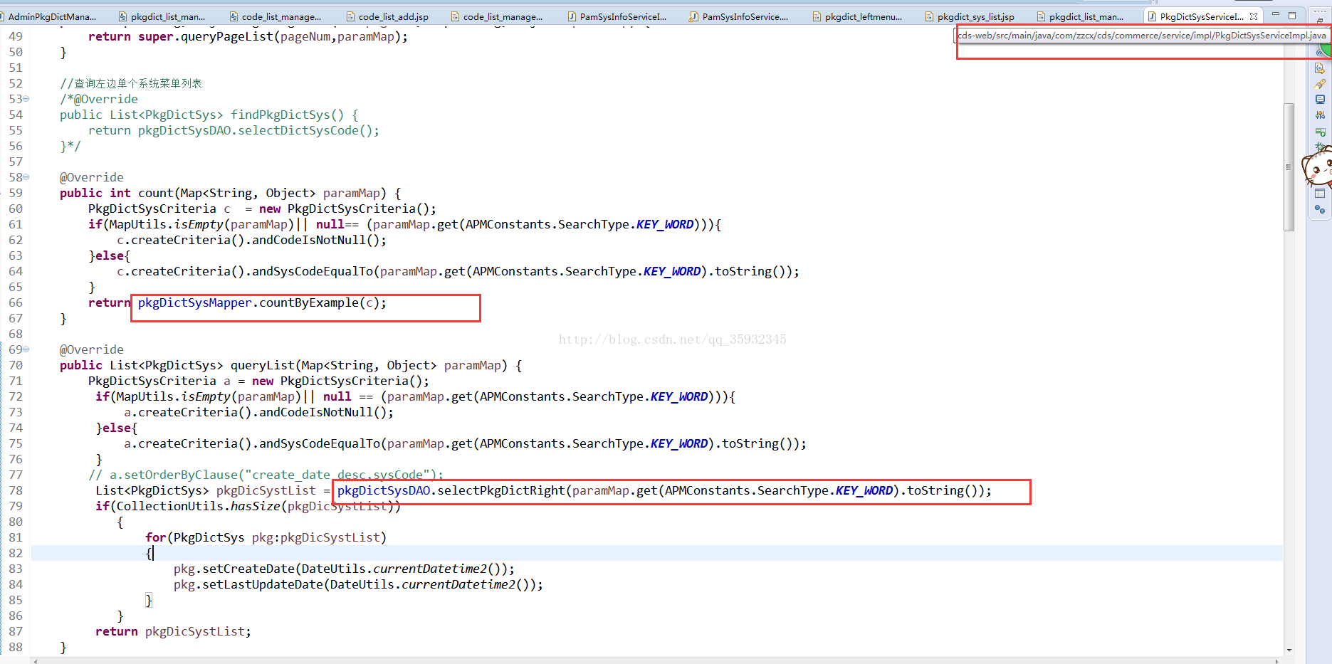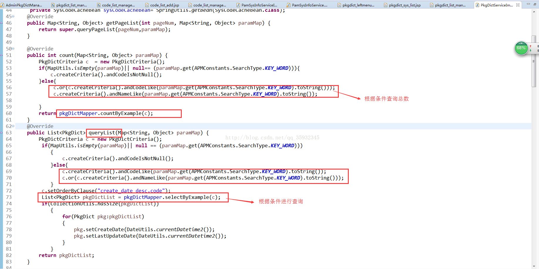 V、对应getPageList查询serviceImpl实现方法如下图:
