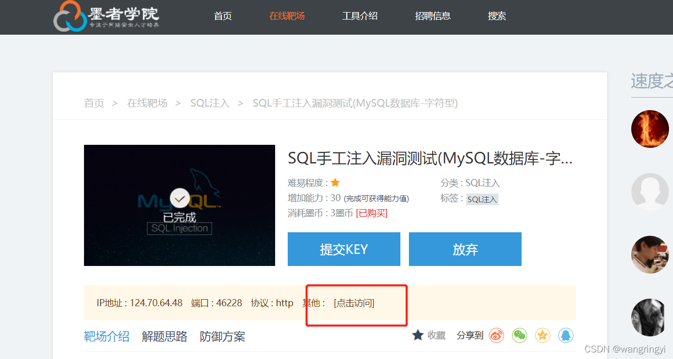 这里我们使用墨者学院的在线靶场做实验