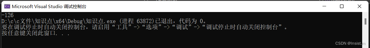 注意这里打印c的时候它的转换说明为% d,意思就是打印一个整形,但是c是char类型,这时候我们又要整形提升了,这里他的符号位为1那么就高位补1 为: