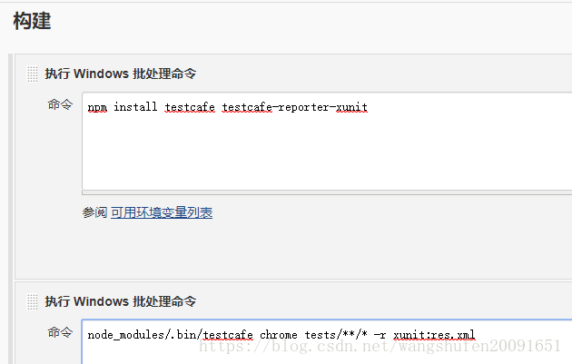 添加另一个在前一个命令之后执行shell命令的步骤来运行TestCafe