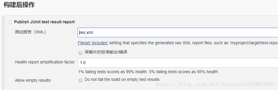 在“ 测试报告XML”字段中,指定测试报告文件:res.xml。