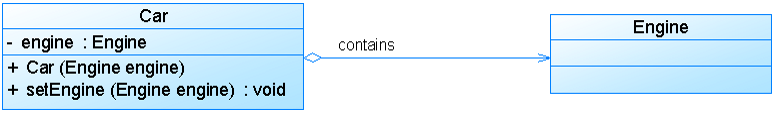 在聚合关系中,成员类是整体类的一部分,即成员对象是整体对象的一部分,但是成员对象可以脱离整体对象独立存在。在 UML 中,聚合关系用带空心菱形的直线表示。