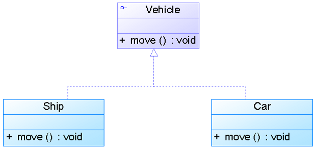 实现关系(Realization)是类实现了接口,类中的操作实现了接口中所声明的操作。在UML中,类与接口之间的实现关系用带空心三角形的虚线来表示。