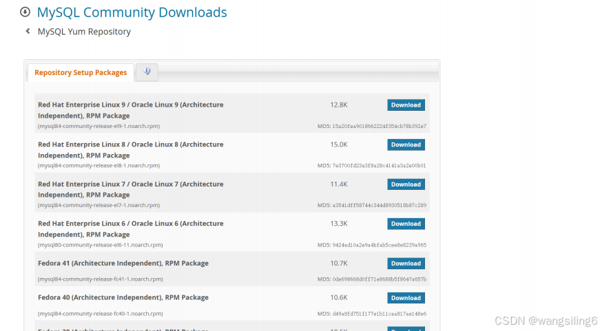 点击【MySQL Yum Repository】链接之后,进入在线仓库安装页面,单击【Download】按钮进入仓库 下载确认页面。