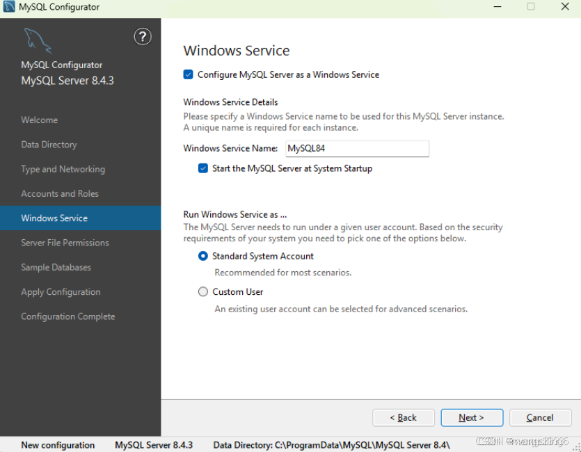 进入服务配置页面,这里我们保持默认,单击【 Next 】按钮进入下一步。
