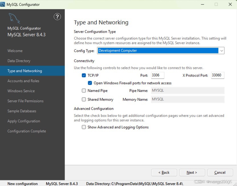 进入配置类型和网络配置页面,我们这里保持默认,单击【 Next 】按钮进入下一步。