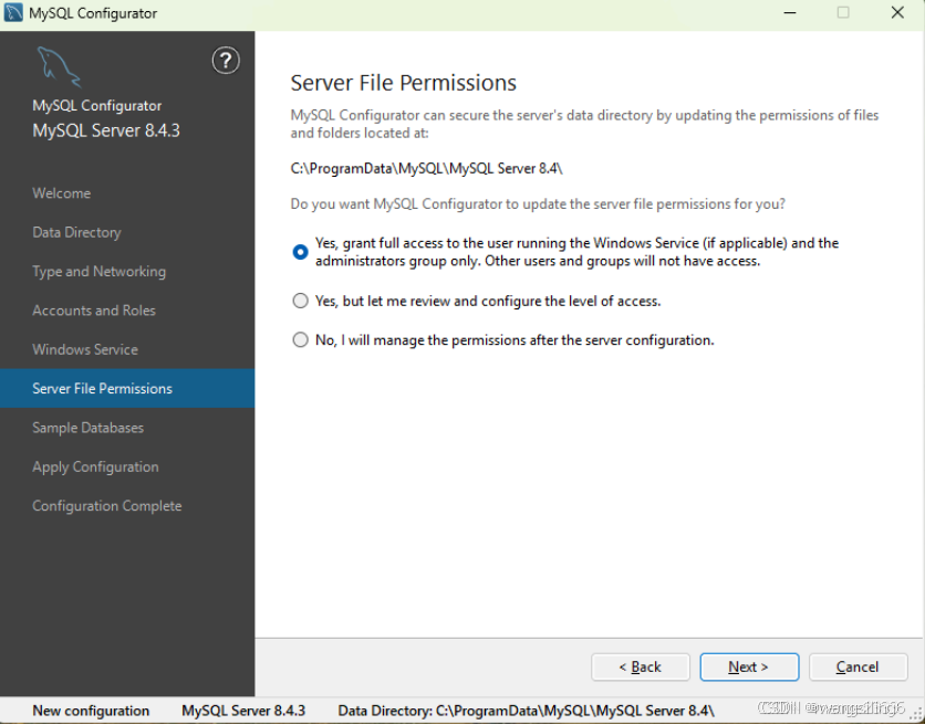 进入服务权限页面,我们这里保持默认,单击【 Next 】按钮进入下一步。
