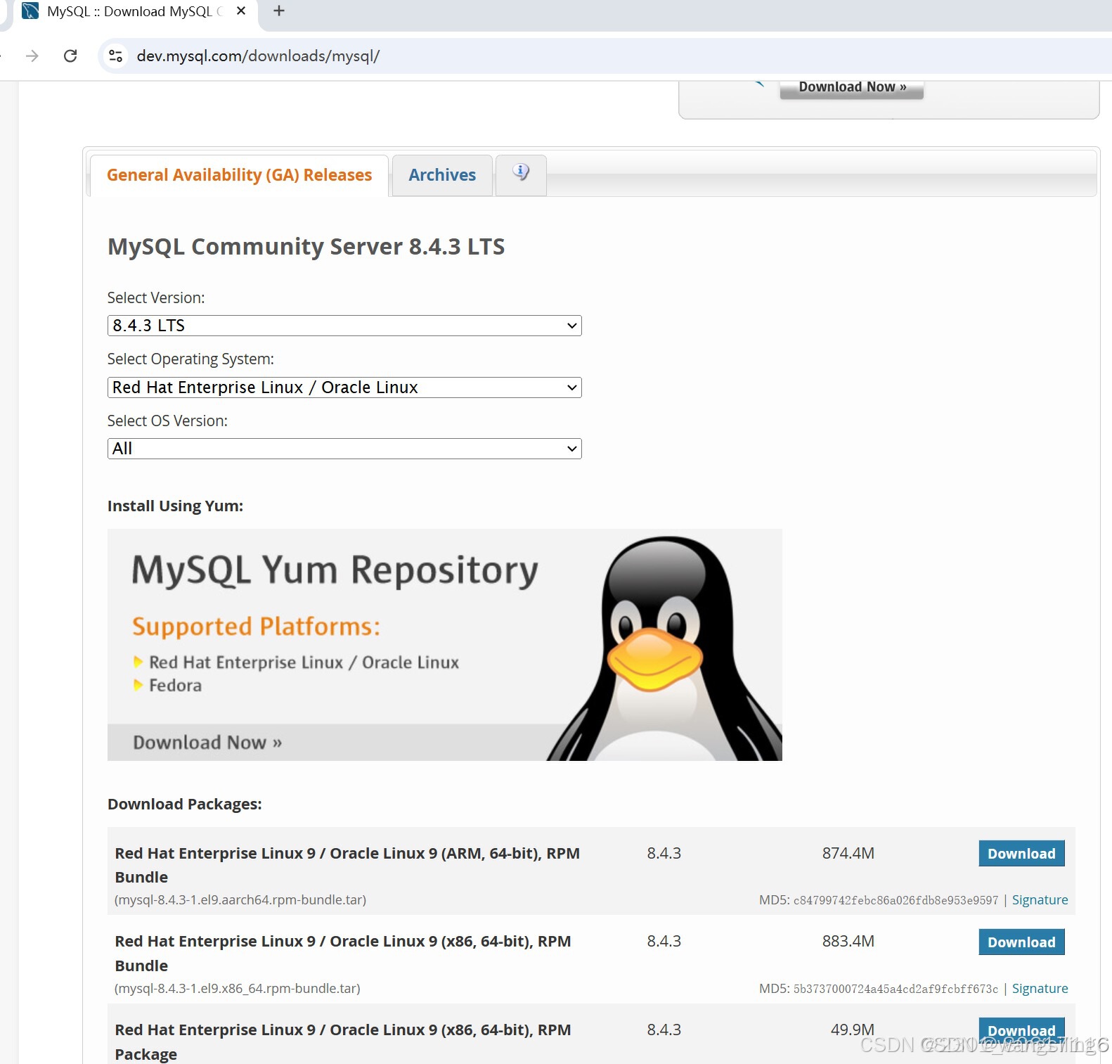 [root@MySQL ~]# wget https://cdn.mysql.com//Downloads/MySQL-8.4/mysql-8.4.3-1.el9.x86_64.rpm-bundle.tar