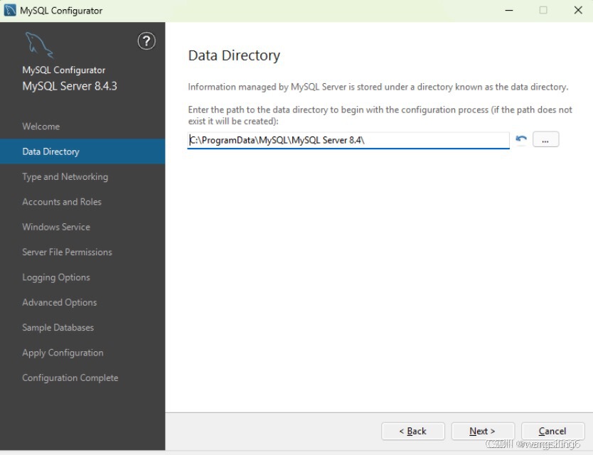 进入选择数据目录页面,这里我们保持默认,单击【 Next 】按钮进入下一步。
