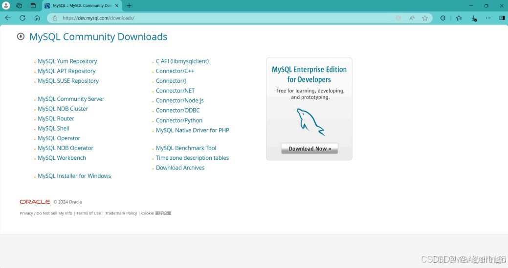 找到MySQL 之后,进入页面,单击Download进入仓库下载确认页面。