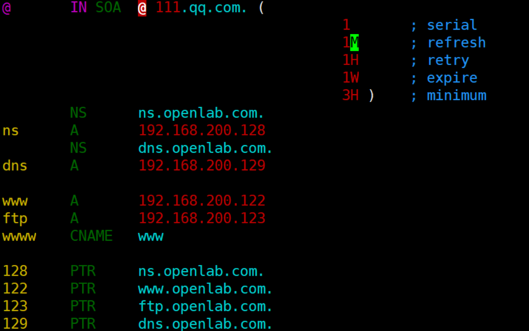 [root@localhost ~] cp -a /var/named/named.localhost /var/named/named.openlab.com